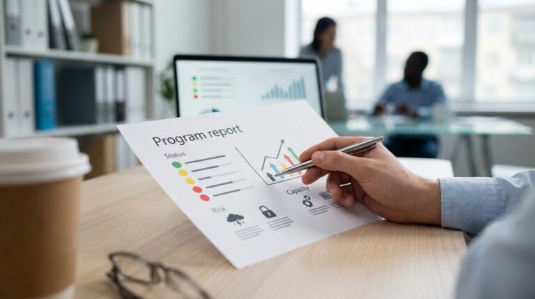 Det er her mange teams får mest værdi af et PMO eller programkontor. Ikke som “kontrolinstans”, men som en praktisk motor for ensartet opfølgning, transparens og tidlig eskalation. På BlivProjektleder.dk ses PMO ofte beskrevet netop som en måde at samle metodik, skabe overblik og spotte tværgående udfordringer tidligt.